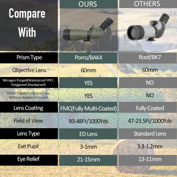 20-60x60 Long Distance ED Waterproof Spotting Scope With Tripod Images |