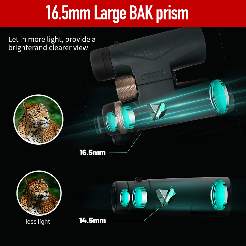 6.Easy to use: The binoculars can be used with a tripod, convenient for long time use. With the strap and travel bag, It is easy to carry and storage